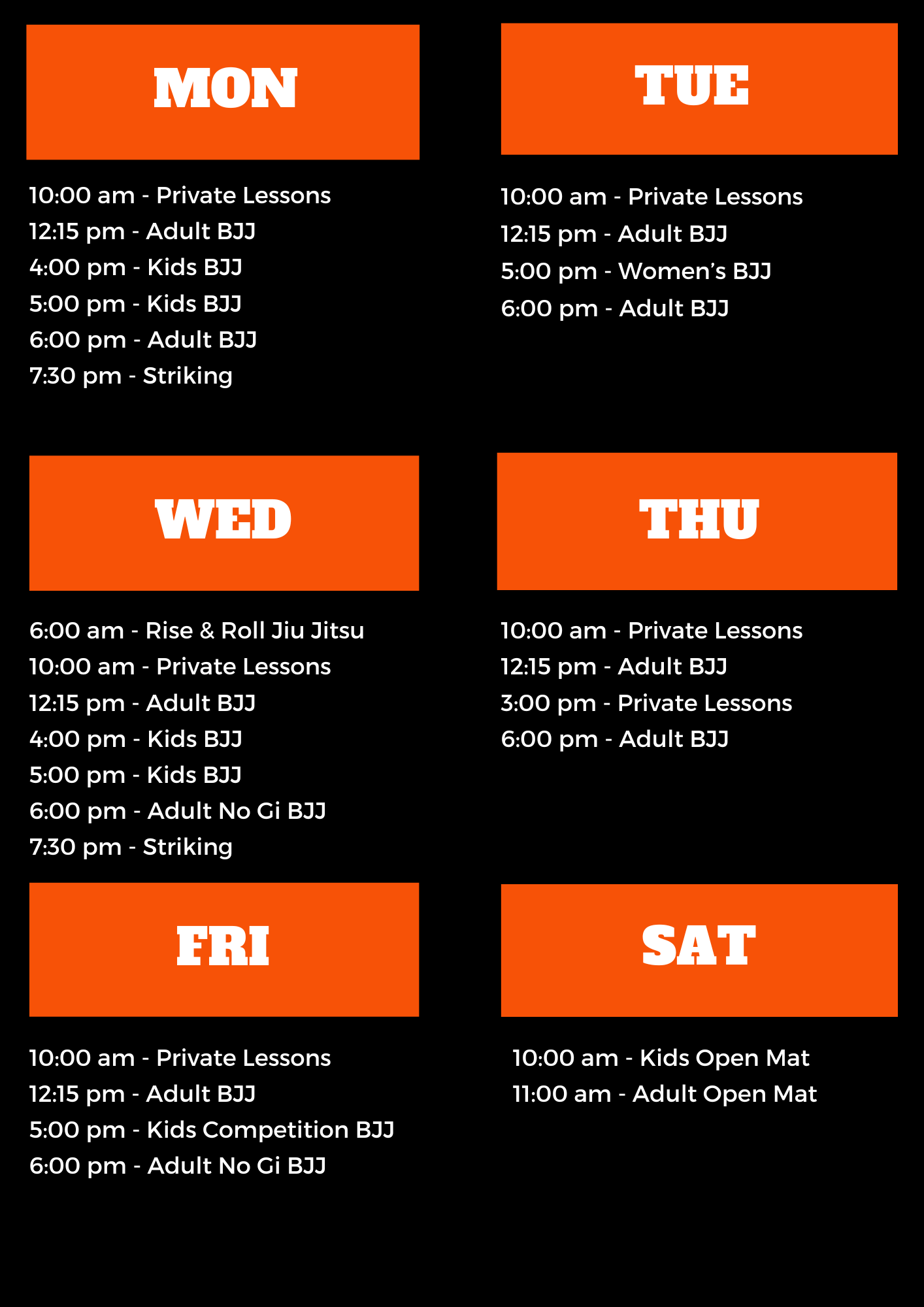 Our fundamentals and advanced classes are designed for beginners as well as experienced grapplers looking to further their training. We cover everything from basic positioning to transitions and submissions. Adult classes are for both men and women and include warm up, fundamentals and conditioning drills, then end with live sparring sessions. No one is ever required to spare (or “roll”) at any point with both safety and courtesy for each other being a main focus of every class. The first rule of every session is “protect your training partner”. This creates a sustainable training environment that minimizes injury and amplifies technique and application.